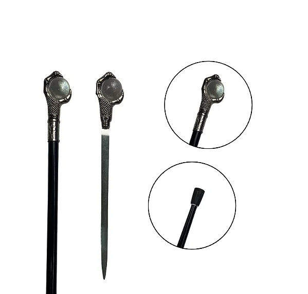 A bengala de luxo com garra e punhal é um item ornamental e, em alguns casos, utilizado em rituais, que esconde uma lâmina em seu interior. A empunhadura, geralmente em formato de garra (por vezes segurando uma esfera ou objeto de cristal), funciona como o cabo da adaga, sendo rosqueada para liberar o punhal oculto.