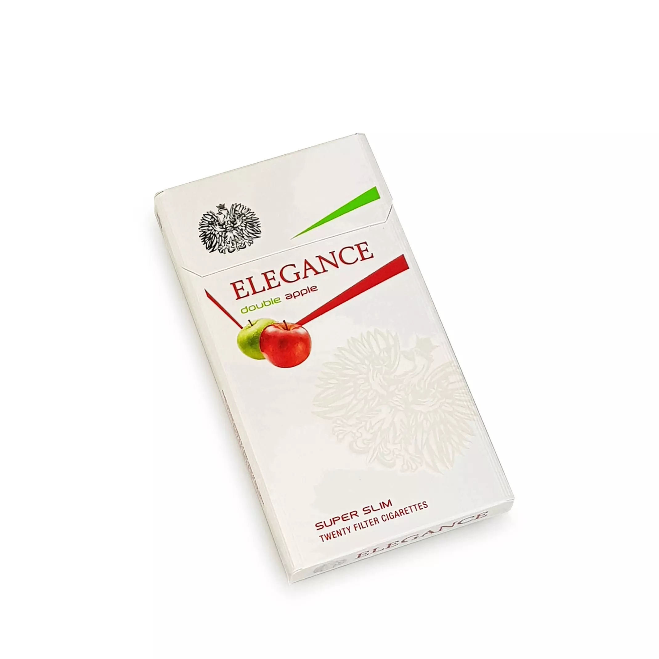 O cigarro sabor Duas Maçã - Elegance Super Slims não representa nada além de um produto de tabaco aromatizado, voltado principalmente para atrair um público jovem e feminino. A combinação das características do produto — que tem sabor de duas maçãs. Ele é produzido nos Emirados Árabes e possui um formato fino, os chamados super slims, com 5mm de diâmetro.